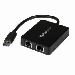 StarTech.com USB32000SPT USB3.0-2ポートGigabitEthernetLANアダプタブラック(USBポートx1付き)10/100/1000MbpsNICネットワークアダプタUSBSuperSpeed(オス)-2xRJ45(メス)有線LANアダプタ