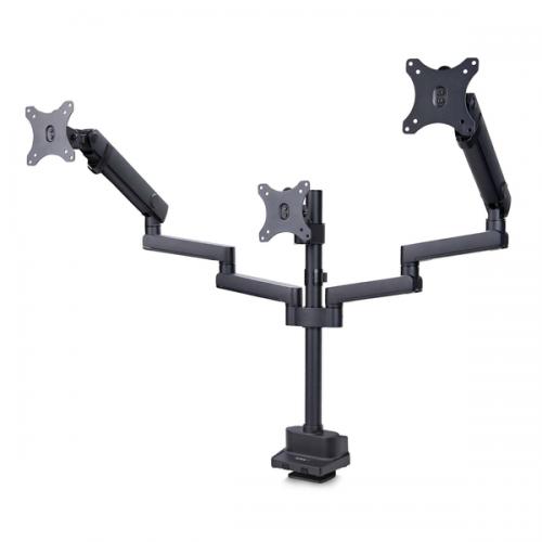●トリプルモニター(3画面)用●27インチディスプレイ用ディスプレイ対応●対応VESAパターン:75x75、100x100●スプリングアシストアーム(調整角度:左右+/-180度、上下+/-90度)●VESAプレート 90度回転●アーム高さ224mm●取り付け方法:Cクランプまたはグロメット ●最大取り付け幅:51mm
