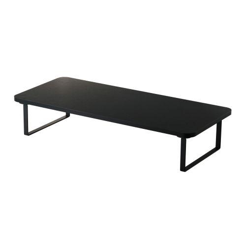 ■27インチまでのディスプレイ(パソコンモニター)に対応したディスプレイスタンドです。 ■約12cmの台でディスプレイ使用時の目線を上げられるため、パソコン作業の際の姿勢を改善します。 ■ディスプレイスタンドの下のスペースを有効活用してデスクの上を広く使うことができます。 ■パソコン不使用時にはディスプレイスタンドの下のスペースに横幅約50cmまでのフルキーボードを収納可能です。 ■工具不要の簡単組み立て仕様です。 ■脚部にはゴム脚がついているので、机上に設置しても滑りにくく安定してご使用いただけます。 ■エレコム社環境認定基準を1つ以上満たし、『THINK ECOLOGY』マークを表示した製品です。 ■環境保全に取り組み、製品の包装容器が紙・ダンボール・ポリ袋のみで構成されている製品です。 ■対応サイズ:~27インチディスプレイ ■耐荷重:10kg ■サイズ:幅約590mm×奥行約260mm×高さ約122mm ■質量:約1.68kg ■カラー:ブラック ■材質:パーチクルボード、スチール ■その他:ディスプレイスタンド下部内寸:幅約505mm×奥行約260mm×高さ約110mm