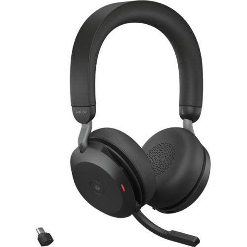 【無線ヘッドセット】▼Microsoft Teams認定済み▼USB-C Bluetoothアダプター付属 ▼充電スタンド付属 ▼接続(Bluetooth ※動作範囲最大30m ※有線接続時USB-C) ▼バッテリー持続時間(最長36時間/音楽再生時 ※通話は最長24時間)▼本体サイズ(幅145mm×高さ67mm×奥行き190mm) ▼本体重量(197g) ▼イヤーパッド素材(レザー) ▼カラー(黒) ▼保証2年 ▼オンイヤー型 ▼40mmスピーカー ▼マイク数8、内4つのマイクが雑音を分析してノイズを低減「ノイズキャンセリングマイク」 ▼騒音を低減してどこからでも会議に集中できる「アクティブノイズキャンセリング」 ▼新形状のイヤーカップがより効果的に雑音をブロック「パッシブノイズキャンセリング」 ▼耳にフィットして遮音性も快適性もUP「メモリーフォームクッション」▼外部音を取り込んで周囲の音声を確認できる「ヒアスルー」 ▼2台同時接続可能「マルチポイント」▼取込み中だと一目でわかる「ビジーライト搭載」 ▼マイクアームの上げ下げでミュートをON/OFF「ブームアームミュート」 ――【同梱物】デスクスタンド、USB-C Bluetoothアダプター(Jabra Link380c/390c MS)、USBケーブル(1.2m)、専用ポーチ、取扱説明書
