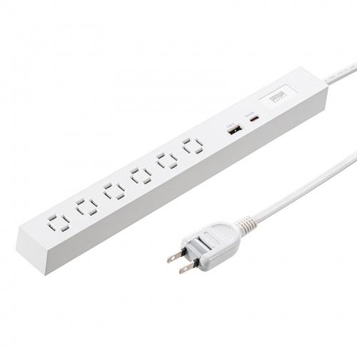 サンワサプライ TAP-SLIM6UC-15W スリムタップ(AC6個口・A1+C1・PD33W・1.5m・ホワイト)