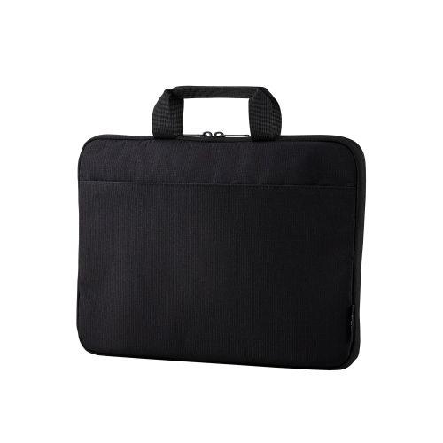 ■三辺が大きく開くタイプなので、バッグを開いてそのままパソコン操作が可能。出し入れの手間を省けて、作業を効率よく進められます。 ■開閉がスムーズでパソコンを出し入れしやすい、ダブルファスナーを採用しています。 ■ハンドル付きで、カバンに入れていても取り出しやすいです。 ■バッグ内部には、出し入れ時にパソコン本体を傷つけにくい起毛素材を採用しています。 ■軽量でスリムな設計なので、カバンに入れてもかさばりません。 ■前面にはケーブルや小物をすっきり収納できるファスナーポケット付き。バッグの中がごちゃつかず、必要なものをすぐに取り出せます。 ■外形寸法:W約328mm×D約20mm×H約240mm ※ハンドル含まず ■内寸:W約308mm×D約18mm×H約220mm ※13.3インチノートパソコンの参考収納寸法 ■対応モデル:13.3インチまでのノートパソコン ■パソコン収納部内寸備考:※W約308mm×D約18mm×H約220mmが対応端末サイズとして最大です。これより小さい寸法の端末の収納に対応します。一部の端末は対応しない場合があり、保証の限りではありません。 ■ポケット(前面):ファスナーポケット×1 ■カラー:ブラック ■材質:ポリエステル ■重量:約190g