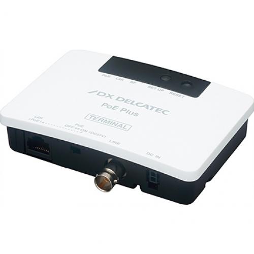 ■PoE対応の同軸LANアダプターの子機です。 ■親機/子機:ターミナル(子機) ■使用周波数帯域:2~28MHz ■変調方式:Wavelet OFDM ■最大通信速度:240Mbps(理論最大速度) ■実効通信速度最大:95Mbps(UDP)/70Mbps(TCP) ■セキュリティAES:128bit暗号化 ■端子数:1端子 ■最大伝送距離:PoC給電ON時:500m ※PoC給電OFF時:2000m S-5C-FB使用時 ※ターミナル〈子機〉にオプションのACアダプター(別売)接続時 ■VSWR:2.5MHz以下 ■通信モード:IEEE802.3準拠(10Base-T、100Base-TX)、MDI/MDI-X クロス/ストレート自動認識 ■ポート数:1ポート ■基本接続構成:基本はマスター(親機)に対しターミナル(子機)1台 ■IPカメラ推奨接続台数:最大4台(高画質設定で1台あたり約14Mbps相当) 最大10台(低画質設定で1台あたり約5Mbps相当) ■電源電圧:専用ACアダプター 入力AC100V(50/60Hz)出力DC57V/1.14A(電源コードを含むコード長約3.6m) ■PoE給電電力:最大34.2W(IEEE802.3at準拠 給電方式:Alternative B) ■消費電力:最大47W(同軸給電あり/PoE給電あり)、最大7W(同軸給電あり/PoE給電なし) ■寸法:幅75mm×奥行110mm×高さ27mm ※突起部を除く ■重量:110g ※専用ACアダプターを除く
