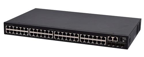 10/100/1000を48ポート、SFP+スロット(10G)を4ポート装備した1GbE高機能PoE+レイヤ2スイッチ(装置あたり最大740W供給可能)。19インチラック搭載用品標準添付。NetMeisterによる管理が可能。DHCP(C/R/SV/SN)機能、ルーティング(スタティック、BFD)機能あり。