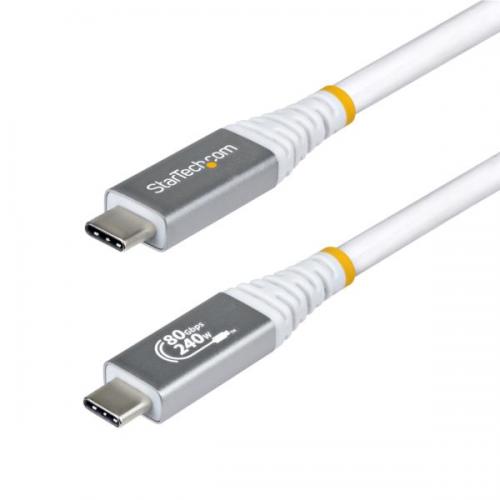 ●1m USB-IF認証USB4(USB-C)ケーブルです。●最大80Gbpsの高速データ転送に対応しており、大容量ファイルも快適に扱えます。●DisplayPort 2.1(DP80)およびDSCに対応し、8K 120Hzまたは4K 240Hzの高精細な映像出力が可能です。●PD 3.1による最大240Wの急速充電に対応し、高出力が必要なノートPCにも安心してご利用いただけます。●USB-CおよびThunderbolt 4ポート搭載機器と高い互換性があり、ドッキングステーションやモニター、外付けストレージにも対応します。●E-markerチップを内蔵しており、接続機器に応じた安全かつ安定した電力供給を実現します。●USB4の性能を活かしながら、USB 3.2やUSB 2.0との下位互換にも対応しており、幅広い機器と接続できます。●コネクターにはクイックID対応コネクターマークを採用し、複数のケーブルを使う環境でも仕様の識別が容易です。●環境に配慮した柔軟なTPE被覆とEMI(電磁干渉)対策のシールド構造を備え、RoHS指令にも準拠しています。●StarTech.comでは製品に関するご質問やご相談を公式ウェブサイトのお問い合わせフォーム、メール、電話にて承っております。