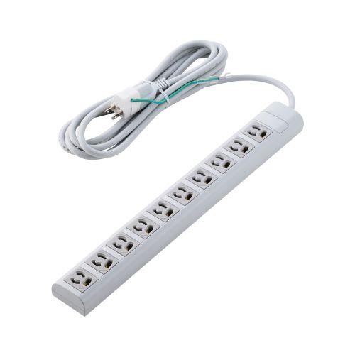 ■プラグと差込口はそれぞれ3ピン接続の構成で、10口ある差込口には抜け止め機能を備えています。 ■差込口仕様:3ピン ■差込口個数:10口 ■差込口間隔:35mm(差込口中心間寸法) ■プラグ仕様:3ピン ■ACコード長:3m ■定格:15A、125V、合計1500Wまで ■スイッチ:× ■雷ガード:× ■ホコリシャッター:× ■抜け止め機能:○ ■差込口キャップ:× ■通電表示ランプ:× ■二重構造:△(差込口周りのみ) ■二重被ふく:○ ■絶縁キャップ付きプラグ:× ■スイングプラグ:× ■マグネット:○ ■吊り穴:× ■ブレーカー:× ■ノイズフィルター:× ■モジュラージャック:× ■連動機能:× ■変換アダプター:○ ■カラー:ライトグレー ■材質:ABS樹脂、UF樹脂、PVC樹脂 ■外形寸法:幅約50mm×奥行約400mm×高さ約32mm ※本体のみ(突起部を除く) ■質量:約770g ■付属品:3ピン→アース線付き2ピン変換アダプター ■環境配慮事項:THINK ECOLOGY対応、EU RoHS指令準拠(10物質) ■使用可能地域:日本国内専用 ■法規:◇PSE(特定電気用品) ■保証期間:1年間