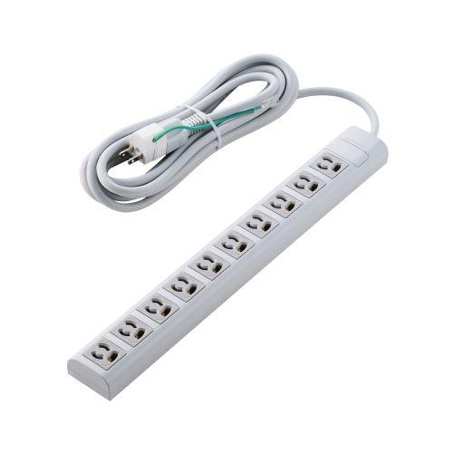 ■プラグと差込口はそれぞれ3ピン接続の構成で、10口ある差込口には抜け止め機能を備えています。 ■環境保全に取り組み、製品の包装容器が紙・ダンボール・ポリ袋のみで構成されている製品です。 ■差込口仕様:3ピン ■差込口個数:10口 ■差込口間隔:35mm(差込口中心間寸法) ■プラグ仕様:3ピン ■ACコード長:5m ■定格:15A、125V、合計1500Wまで ■スイッチ:× ■雷ガード:× ■ホコリシャッター:× ■抜け止め機能:○ ■差込口キャップ:× ■通電表示ランプ:× ■二重構造:△(差込口周りのみ) ■二重被ふく:○ ■絶縁キャップ付きプラグ:× ■スイングプラグ:× ■マグネット:○ ■吊り穴:× ■ブレーカー:× ■ノイズフィルター:× ■モジュラージャック:× ■連動機能:× ■変換アダプター:○ ■カラー:ライトグレー ■材質:ABS樹脂、UF樹脂、PVC樹脂 ■外形寸法:幅約50mm×奥行約400mm×高さ約32mm ※本体のみ(突起部を除く) ■質量:約1010g ■付属品:3ピン→アース線付き2ピン変換アダプター ■環境配慮事項:THINK ECOLOGY対応、EU RoHS指令準拠(10物質) ■使用可能地域:日本国内専用 ■法規:◇PSE(特定電気用品) ■保証期間:1年間
