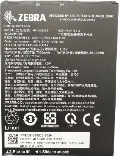 Zebra BTRY-ET401-10INC-01 ET401 10インチ用バッテリーパック、7500mAh、29.35Wh