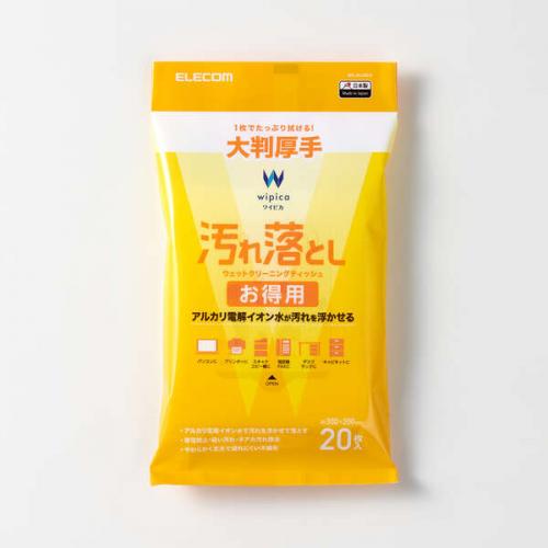 ■アルカリ電解イオン水が汚れを浮かせて落とす、日々のお掃除に最適なお求めやすい価格のお得用ウェットクリーニングティッシュです。 ■パソコン、プリンター、スキャナ、コピー機、電話機・FAX、その他OA機器、デスク・ラック、キャビネットなどの汚れ落としにご使用できます。 ■やわらかいのに丈夫で破れにくいレーヨン系スパンレースを使用しています。 ■繊維の間に汚れを絡め取り、すっきり拭き上げられます。 ■汚れの再付着を軽減する帯電防止効果や、臭いの元となる汚れやしつこい手アカ汚れなどを除去する効果もあります。 ■1枚でたっぷり拭ける厚手大判タイプです。 ■※液晶などの画面には適していません。表面のコーティングが剥離する恐れがあります。液晶などの画面には液晶用ウェットクリーニングティッシュ(WC-DPシリーズ)、液晶用ドライクリーニングティッシュ(WC-DCシリーズ)などをご使用ください。 ■エレコム社環境認定基準を1つ以上満たし、『THINK ECOLOGY』マークを表示した製品です。 ■主成分:アルカリ電解イオン水、エタノール(アルコール) ■材質:レーヨン系スパンレース ■サイズ:ティッシュサイズ:300mm×200mm ■枚数:20枚入り