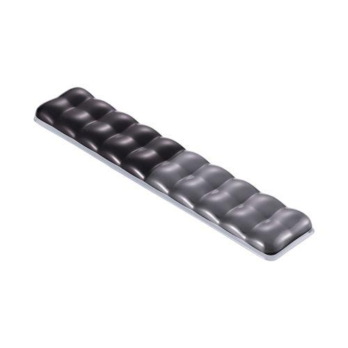 ■程よい弾力のゲルが優しく手首をサポートする、リストレストです。 ■ノートパソコンと合わせて使いやすいスタンダードサイズです。 ■TPU素材で透明感のあるツートンカラーがインテリアのアクセントになります。 ■手洗い可能で、清潔に使用できます。 ■独自の凹凸加工が適度な隙間を作り、心地よい感触と通気性の良さを実現。サラッと快適に使えます。 ■底面はデスクにぴったりと吸着する素材で、ズレや移動を防ぎます。 ■サイズ:幅約355mm×奥行約74mm×高さ約20mm ■材質:表面:TPU、内部:ゲル、裏面:PU ■カラー:ブラック ■重量:約428g