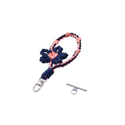 ■やわらかな綿素材を使用しており、軽いつけ心地で手元の負担を感じにくいハンドストラップです。 ■お花のモチーフが印象的に映え、手元にやさしい華やかさを添えます。 ■アクセサリーのような感覚で楽しめるデザインで、毎日のコーディネートにも自然になじみます。 ■手首や腕から提げて持ち歩けるので、両手がふさがらずいつでもサッとスマートフォンの操作ができます。 ■カラビナを1か所に抑えたミニマルな仕様で、持ち歩きやすく軽量です。 ■ストラップが短くかさばらないので、使わないときも邪魔になりません。 ■取り外しやすいフックを使用しているので、ストラップの着脱が簡単にできます。 ■フックや金具は、マットな質感のシルバーを採用しています。 ■サイズ:ハンドストラップ:全長約340mm、ストラップホールシート:W約45mm×D約0.2mm×H約23mm ■耐荷重:約10kgまで ※250g以上の機器本体には使用しないでください。 ■セット内容:ショルダーストラップ、ストラップホールシート(1口)1枚 ■材質:ハンドストラップ:綿・亜鉛合金、ストラップホールシート:ステンレス ■カラー:ネイビー