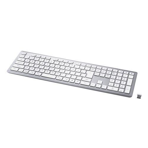 ■軽快ながら芯のある打鍵感と、ブレの少ない精密さを実現。シンプルな美しさと実用性を兼ね備えたパンタグラフキーボード“Precisionist(プレシジョニスト)”シリーズのフルサイズキーボードです。 ■接続方式:USB2.4GHz無線/Bluetooth無線 ■コネクター形状:レシーバー:USB-A プラグ、キーボード本体:USB Type-C ポート ■Bluetooth規格:Bluetooth Low Energy ■対応OS:Windows 11/10、Android 15、macOS 15、iOS 18、iPadOS 18、ChromeOS ■接続先切り替え機能:対応(USB2.4GHz無線:1台、Bluetooth:3台) ■キー配列:日本語配列 ■キー数:110キー ■キータイプ:パンタグラフ ■キーピッチ:19.0mm ■キーストローク:1.5mm ■マルチファンクション機能:あり ■電源:内蔵リチウムイオン二次電池(充電式) ■電池寿命:1回の満充電で最長約7カ月 ※使用状況により異なる ■外形寸法:キーボード:約W436×D130×H16mm(スタンド含まず)、レシーバー:約W15×D19×H6mm ■重量:キーボード:約542g(ケーブル含まず)、レシーバー:約2g ■カラー:ホワイト ■内容物:キーボード本体×1台、レシーバー×1個、充電用ケーブル[USB-A⇔USB Type-C/約1.5m]×1本、他 ■保証期間:1年間