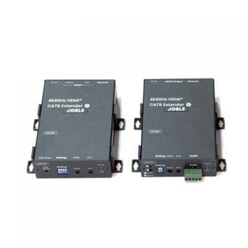 HE03-4K6Gは最大4K 60HzのHDMI映像とLPCM音声、RS232C、赤外線リモコン信号をCAT6のLANケーブルで最大100m伝送します。配線途中にオプションのリピーター「SR01X」や再延長可能な「HE03LR-4K6G」、イーサネットスイッチを接続することで伝送距離の延長や複数モニターへの分配表示が可能です。 ・最大4K(3840×2160) 60Hz、1920×1080では最大120HzのHDMI信号に対応しています。 ・HDCP2.2/1.4に対応しています。 ・音声は最大LPCM7.1ch 192kHzに対応、受信器からのアナログステレオ音声出力も可能です。 ・RS232CはTxとRxの伝送に対応しており最大通信速度は115200bpsです。 ・赤外線リモコン信号は受信器から送信器への伝送が可能です。 ・受信器に接続されたHDMIモニターのEDID情報を記録してHDMI機器に送出できます。 ・HE03T-4K6G/HE03R-4K6Gセット 電源アダプター付属 ・オプションの再延長機能付受信器「HE03LR-4K6G」を使用してHDMI出力と2系統のLANケーブルによる再延長が可能です。 ※分配再延長を行う場合はオプションで受信のみの受信器「HE03R-4K6G」も追加する必要があります。 ※オプションのリピーター「SR01X」を使用して伝送距離の延長も可能です。