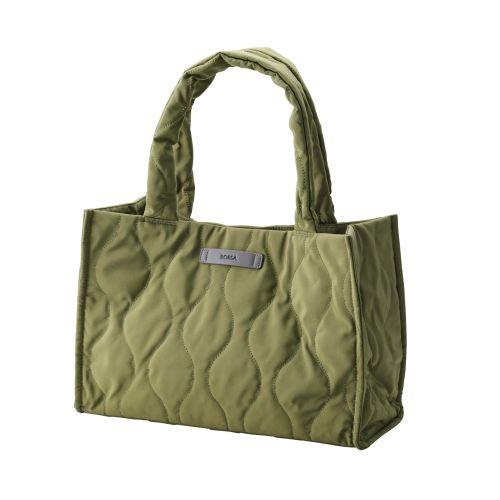 ■A4ファイルボックスも収納可能な大容量設計。資料やワークツールをまとめて収納・保管できます。 ■ハンドル付きで、在宅ワークの道具管理や社内移動時もスムーズに持ち運べます。 ■上品な光沢のあるオニオンステッチのキルティング素材を採用した、大人カジュアルなデザインです。 ■5つの仕分けポケット付きで、マウスやケーブルなどの小物を整理しやすく、必要な物がひと目でわかります。 ■側面のオープンポケットは、ロッカーに入れたままでもサッと取り出せて便利です。 ■14インチまでのノートパソコンを収納可能です。 ■表生地表面に、撥水加工を施しています。 ■外形寸法:幅約375mm×厚さ約160mm×高さ約260mm(ハンドル含まず) ■内寸:幅約325mm×厚さ約20mm×高さ約230mm ※14インチノートパソコン ■対応モデル:14インチまでのノートパソコン ※内寸と収納できるパソコンの外寸は異なる場合がございます。 ■重量:約410g ■材質:ポリエステル ■ポケット(気室内):オープンポケット×5 ■ポケット(側面):オープンポケット×1 ■バッグタイプ:トートタイプ ■容量:約15L ■カラー:カーキ ■その他:撥水防汚加工(表生地)
