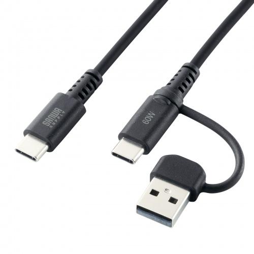 サンワサプライ KU-CCP60ACC10BK USB2.0Type-Cケーブル(CtoA変換アダプタ付き・PD60W・ブラック)