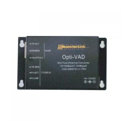 VAD-SD001E.L1.TRCは1系統のイーサネット(10/100M)を最大20km先まで光ファイバーで伝送する送信器です ・光ファイバーは1本、接続端子はSCコネクターです。 ・マルチモードで最大2km、シングルモードで最大20km伝送します。・ケースタイプの金属筐体であり単体での設置が可能です。・DC9~12Vで動作します。(電源アダプター付属) ※伝送には別途受信器(VAD-SD001E.L1.RTC)が必要です。