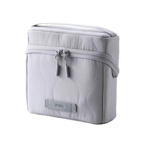 ■たっぷり入る大容量タイプで、デスク周りの小物、筆記用具などのワークツールをまとめてスッキリ収納できます。 ■デスク上で道具入れとして使える、自立設計です。 ■持ち運びに便利なハンドルが付いています。 ■上品な光沢のあるオニオンステッチのキルティング素材を採用した、大人カジュアルなデザインです。 ■ポータブルストレージ、ぺンやUSBメモリなどの小物を整理して収納できる4つのスリーブポケットを備えています。 ■マウスなど厚みのある収納物にもフレキシブルに対応する2つの伸縮仕切りを備えています。 ■ペンやケーブルをまとめて収納できるファスナー開閉式のメッシュポケットを備えています。 ■お好みのチャームを取り付けられるループ付きで、自分らしくカスタマイズできます。 ■表生地表面に、撥水加工を施しています。 ■外形寸法:幅約200mm×厚さ約65mm×高さ約175mm ■内寸:幅約195mm×厚さ約55mm×高さ約170mm ■重量:約180g ■材質:ポリエステル ■カラー:グレー ■ポケット(気室内):スリーブポケット×4、伸縮仕切り×2、ファスナーメッシュポケット×1 ■その他:撥水防汚加工(表生地)