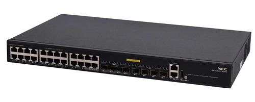 10/100/1000を24ポート(内4ポートはSFPとのコンボポート)、SFP+スロット(10G)を4ポート装備した1GbE高機能PoE+レイヤ2スイッチ(装置あたり最大370W供給可能)。19インチラック搭載用品標準添付。NetMeisterによる管理が可能。DHCP(C/R/SV/SN)機能、ルーティング(スタティック、BFD)機能あり。
