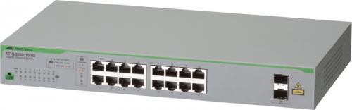 AT-GS950/18 V2 Non-PoE+モ デ ル は、10/100/1000BASE-Tポートを16ポート、SFPを2ポート装備したレイヤー2・ギガビットイーサネット・スマートスイッチです。