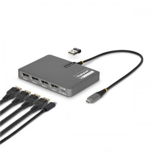 ●USB-C 4画面対応 4K 60Hzビデオアダプターです。●1本のUSB-C接続でノートパソコンから4台の4K 60Hz DisplayPortモニターを拡張でき、高解像度マルチディスプレイ環境を構築できます。●140Wパワーデリバリー(PD)パススルーに対応し、アダプター経由でノートPCを充電しながら安定した映像出力を実現します。●USB-A 2.0ポートを搭載し、マウスやキーボード、ワイヤレスレシーバーなどの周辺機器を同時に接続できます。●主要なWindowsおよびChromeOSでは自動認識され、追加ドライバー不要で簡単にセットアップできます。●DisplayLink技術を採用し、高画質映像と安定したフレームレートを維持しながら滑らかな表示を実現します。●複数のモニターを使用するIT、金融、設計、教育分野などの作業環境に適しており、コンパクト設計で自宅やオフィス、出張先でも快適に活用できます。●注意:macOSデバイスでは手動インストールが必要です。●StarTech.comでは製品に関するご質問やご相談を公式ウェブサイトのお問い合わせフォーム、メール、電話にて承っております。