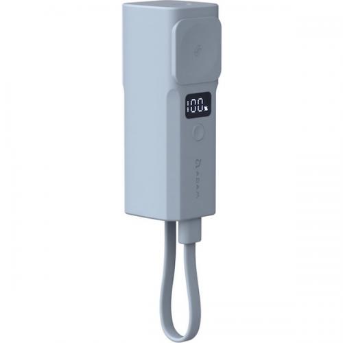 本製品は109gの軽量設計で持ち運びやすく、5000mAhバッテリーにより2時間で素早くフル充電が可能なモバイルバッテリーです。内蔵USB-CケーブルとUSB-Cポートで入出力に対応し、最大3台を同時に充電できます。Apple WatchやGalaxy Watchに対応したワイヤレス充電エリアや、充電状況をリアルタイムで確認できるLEDディスプレイも搭載。日常から旅行まで幅広く活躍し、1年間の限定保証も付属します。