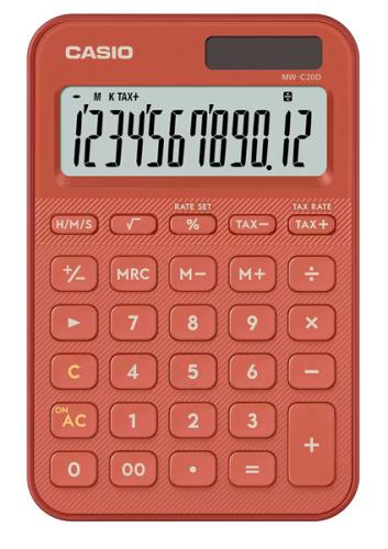 CASIO MW-C20D-RD-N デザイン電卓 カラフル ブリックレッド
